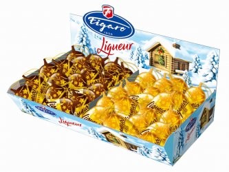 Likőrös krémmel töltött függelékek (tojás- és csokoládélikőr ízű) 27,5 g (display-ben)